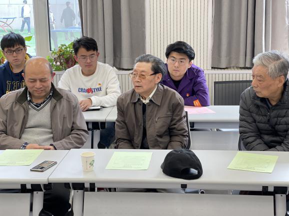 的老教师,曾参与过国家某重点型号鱼雷的设计工作,张群飞一边介绍一边表达了对两位老前辈的敬仰之情,并结合自身多年科研工作中的一些疑问向两位老教师进行请教,两位老教师做了耐心细致的解答,师生均表示获益匪浅。