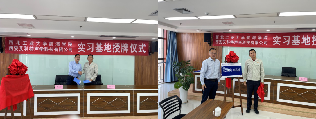与西安艾科特声学科技有限公司举行实习基地授牌仪式。院长潘光、书记孙华强、副院长曾向阳、副院长杨坤德、本科生与专业建设办公室主任李玥及实验教学与创新实践中心主任李道江,公司总经理王金林、副总经理宁晓峰、研究所所长张彦峰、总经理助理龙拉怀、副总工程师行晓亮、副总工程师代海及市场部部长刘玲等出席仪式。