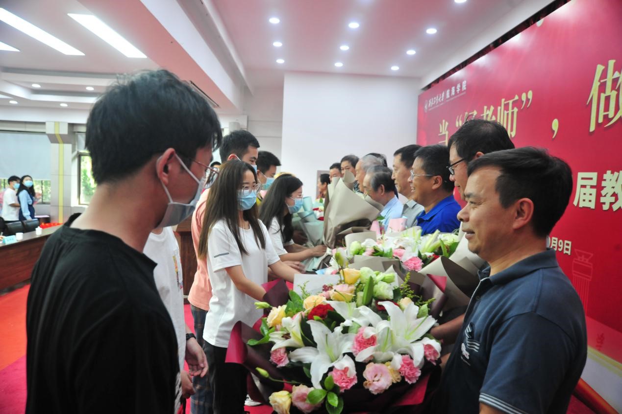 走过65年春秋,一代又一代的海院师生奋力拼搏,前赴后继,弦歌不绝,为学院的建设和发展献出自己的力量。有的老师从教近40年,他们见证了学院的历史,为了表达对老师们的敬意与节日的祝福,海院学生向从教35周年以上教师献花,学院领导向老师们赠送纪念品,衷心祝老师们节日快乐。