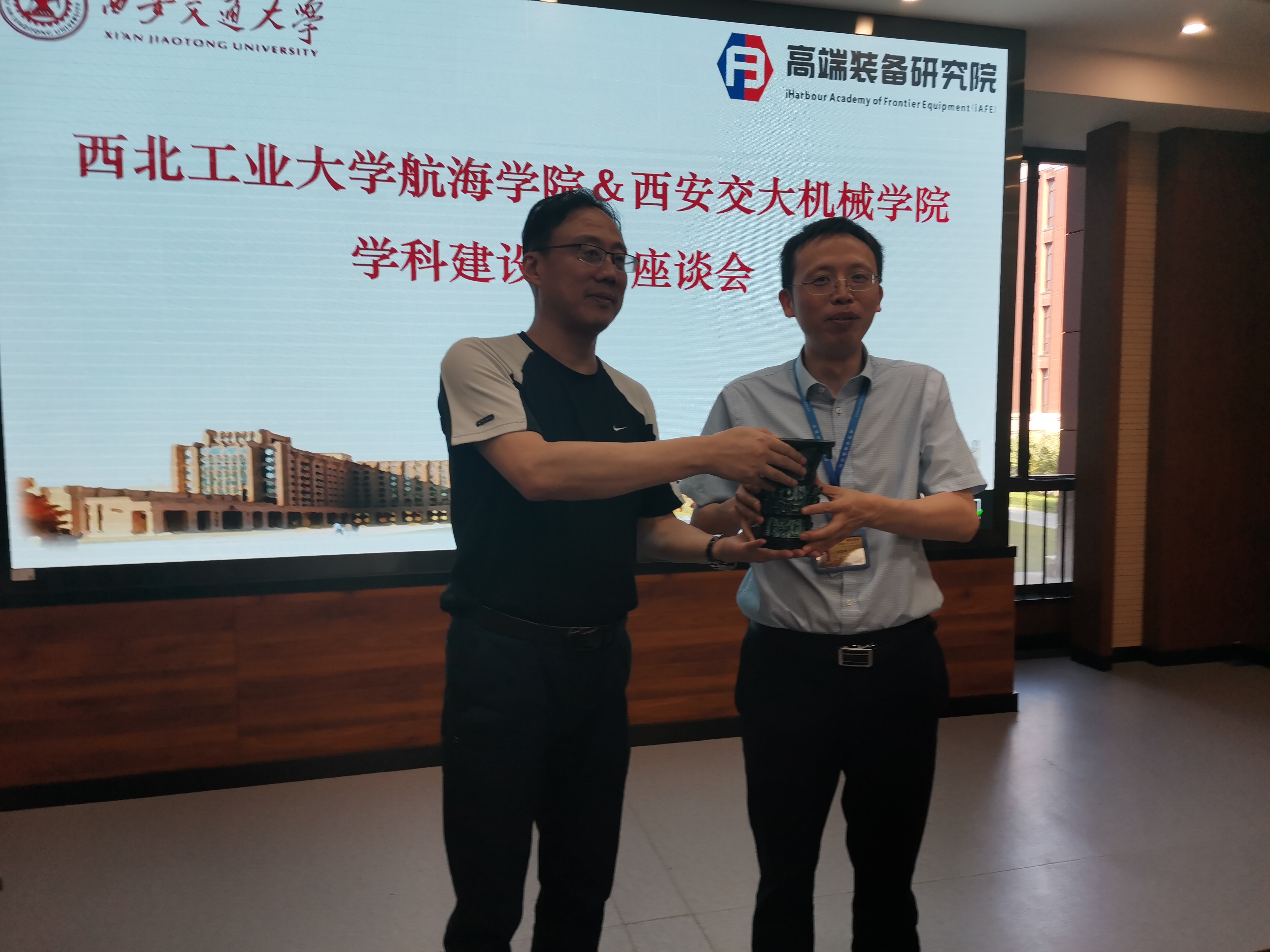 院长潘光、党委书记孙华强、副院长曾向阳及机关各办公室主任前往西安交通大学机械学院开展调研交流活动。本次调研的主题是学院专业建设、学科建设、学院管理模式等。西安交通大学机械学院院长陈雪峰、党委副书记张敏、学院办公室主任张新功及其他机关管理教师参加本次会议。