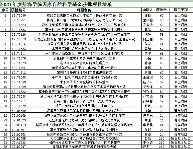 国家自然科学基金获批项目清单
