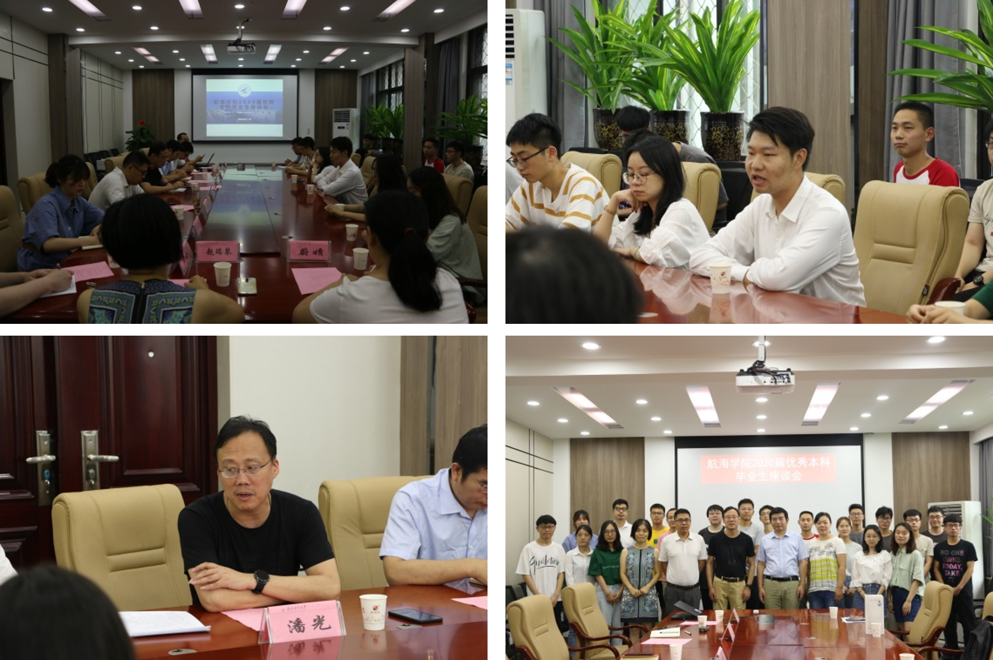 201会议室开始。院长潘光、副院长曾向阳、副书记王银涛、院长助理张龙、本科与专业建设办公室主任李玥、本科生主管崔晓、2016级辅导员任树伟、班主任赵瑞琴、蔚婧9位老师和李沛霖等16位优秀毕业生代表参会,会议由副书记王银涛主持。同学们结合自身4年学习生活对学院的课程设置、实习实践环节、学生工作等方面提出了建设性意见,老师们对同学们的意见作出了充分的回复,学生和老师之间的交流也碰撞出很多火花。院长潘光对老师们、同学们的交流进行了总结讲话。院长强调,虽然大家已经毕业,但学习的劲头不能松懈,要讲目光放长远,等大家10年、20年后再返校时,我们再座谈言欢;希望大家在今后的学习中,除了将目光放在专业知识上,还要提升自己交流、表达、抗挫能力,全面发展。接着,潘光院长为优秀毕业生颁发了纪念品。此次座谈会讨论热烈,老师们表示会后对针对大家的建议逐项落实。