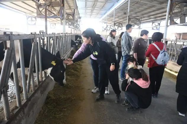 中午大家品尝了无公害蔬菜做的农家饭,并体验了做花花馍、磨豆浆的乐趣。下午乘车前往美盛农业基地(绿优牧场)奶牛养殖基地参观。基地专家带领大家参观奶牛基地和饲料的同时,为大家讲解中国奶牛发展史和牛奶的知识,随后大家分组品尝鲜牛奶和基地自制老酸奶。大家乘兴而来,满载而归。