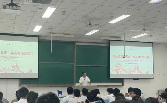 党委书记孙华强在西北工业大学长安校区教学西楼D205教室为2023级本科和硕士新生讲授主题为“凝心聚魂跟党走,奋发有为新征程”的党课。