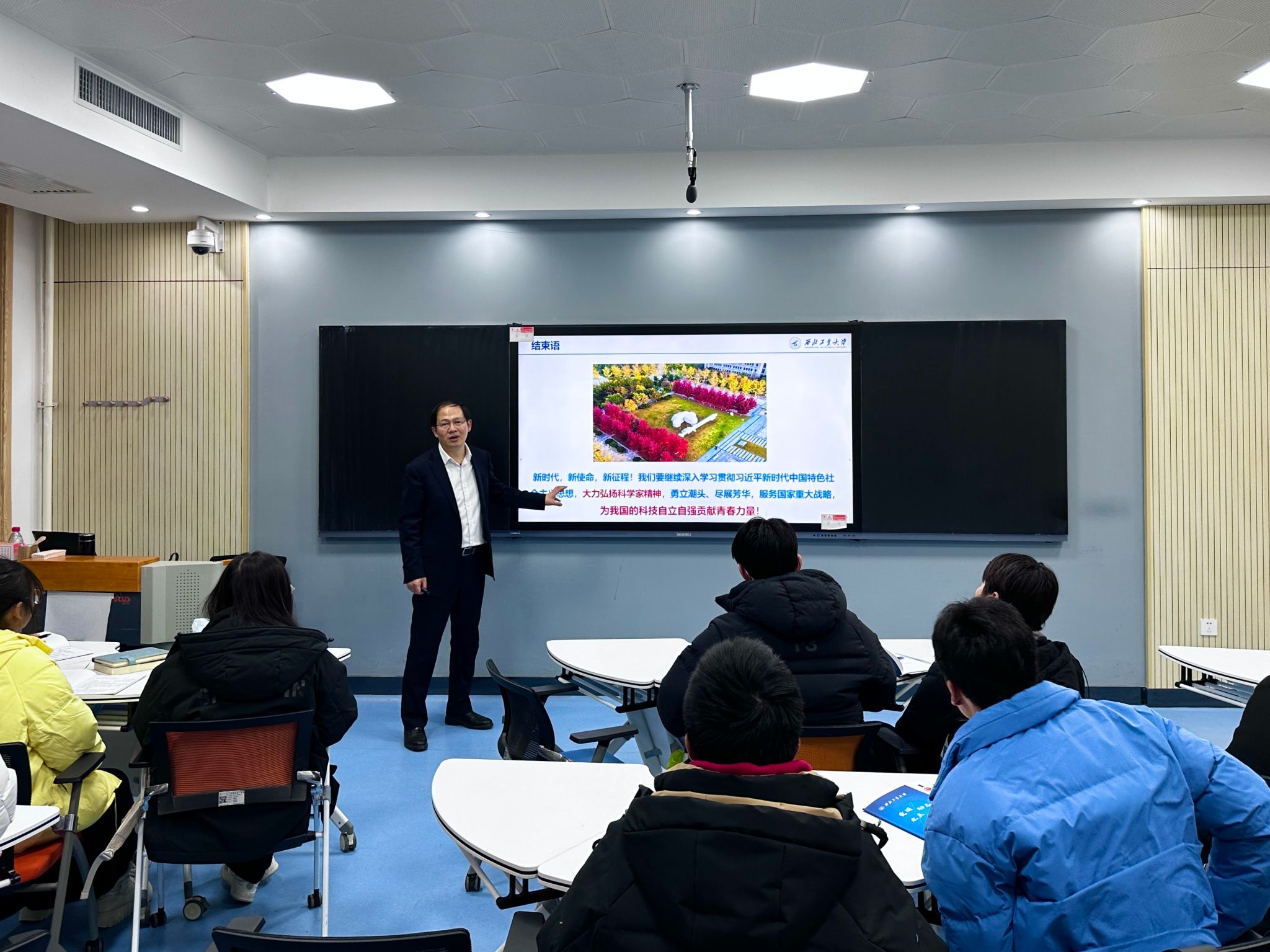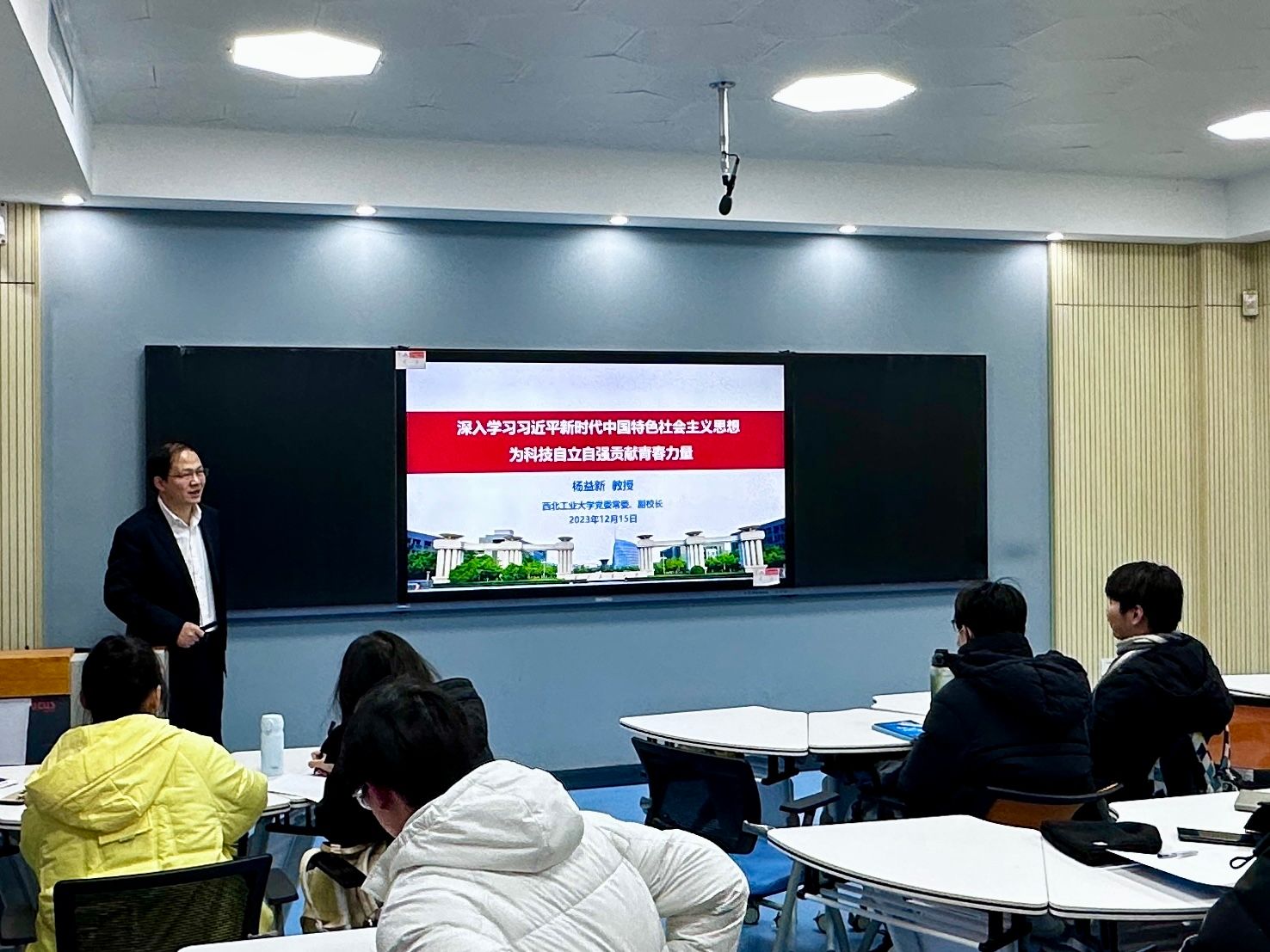 特别邀请西北工业大学党委常委、副校长杨益新教授为学院师生讲授主题为《深入学习习近平新时代中国特色社会主义思想,为科技自立自强贡献青春力量》的思政课,银河国际